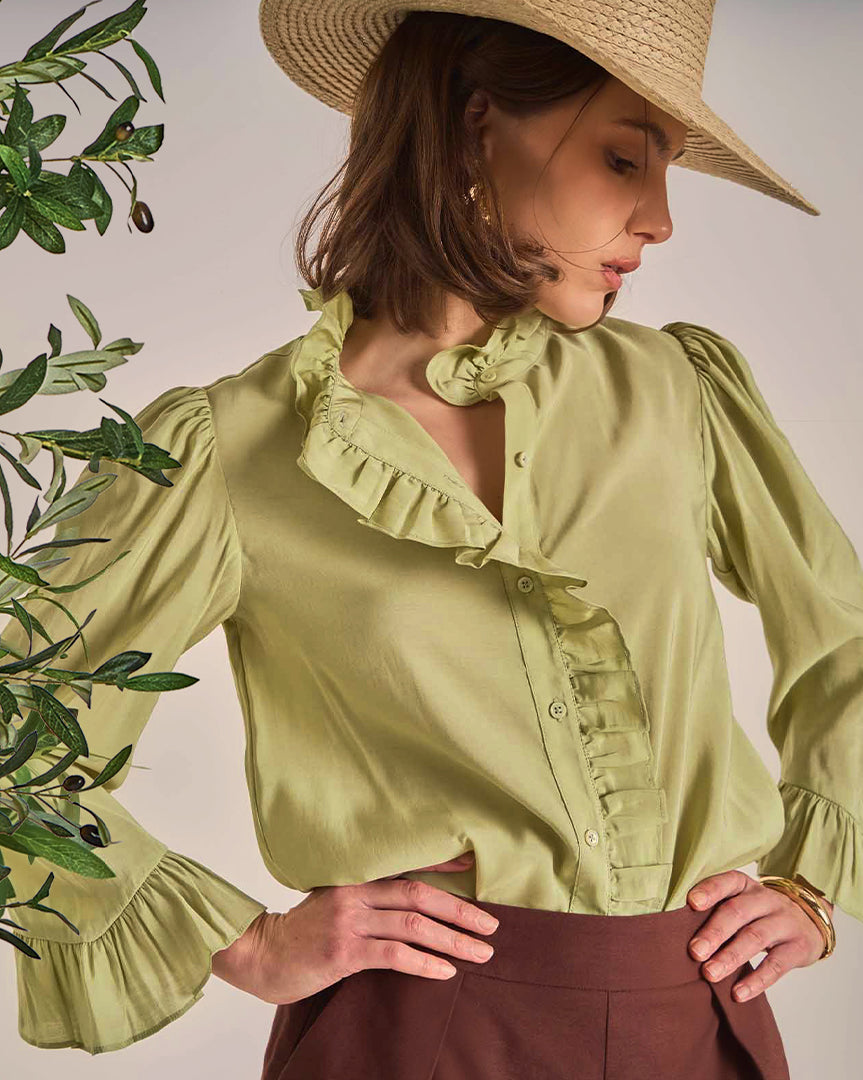 Feminine, classic silhouettes with frilly details, airy cotton, and bold colors, offering versatile, timeless pieces for day to night.