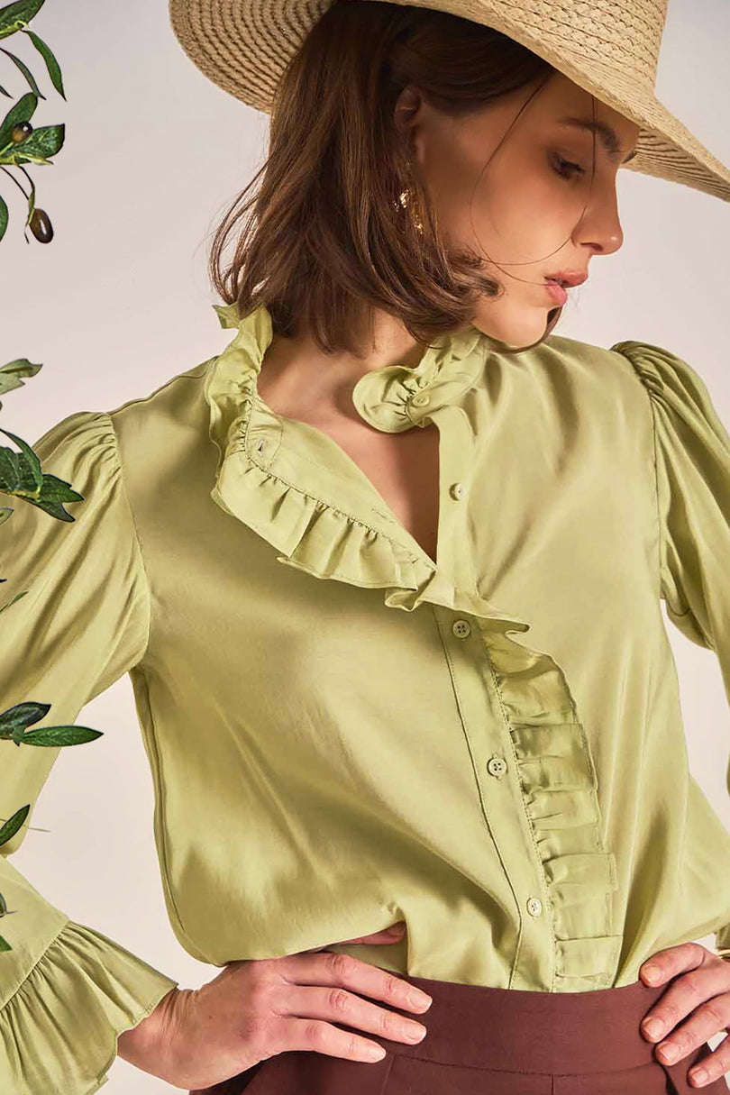 Feminine, classic silhouettes with frilly details, airy cotton, and bold colors, offering versatile, timeless pieces for day to night.